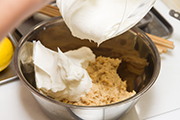 | 2 | (1)の酒粕に味噌とマスカルポーネを加えてしっかり混ぜ合わせます。![]() ※味噌の辛さによって、お好みで量を調節してください。 |