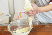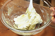 | 4 | (2)に(3)を入れてゴムベラで混ぜ、口金をつけた絞り袋に入れます。![]() |