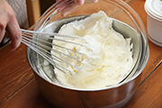 | 3 | ボウルによく冷えたクリームを入れ、氷水を入れたボウルにあて8分だてにします。![]() |