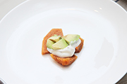 | 水切りヨーグルトを使ったソースは、具材を重ねていく時に倒れないようにする役目もあるので、ゆるいものよりも固めの方がおすすめです。 生ハムを鶏ハムに代えても美味しいです。柿は、メロン等に代えても美味しくいただけます。 |