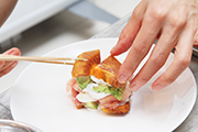 | 4 | (3)をお皿に交互に盛り、都度、崩れないように(2)のソースを挟みます。![]() ![]() |