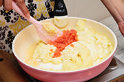 | 5 | 鍋に3のじゃがいもとAの材料を入れ、中火で加熱しながらよく混ぜます。![]() ![]() (明太子は塩気を調整しながら加えてください。) |