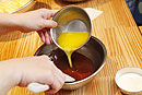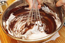 | 4 | (3)に湯せんで人肌程度に温めたクリームを加えます。 (ベースが固いので、こぼさないように) ![]() ![]() |