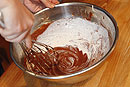 | 5 | ふるったココアパウダーと薄力粉を混ぜます。 (生地が固いと後でメレンゲを合わせづらくなるので素早く作業しましょう) ![]() ![]() |