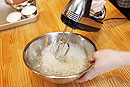 | 1 | ボウルによく冷やしておいた卵白を入れ、ハンドミキサーで泡だてます。 ボウルを傾け、ハンドミキサーを斜めにあてます。 ![]() |