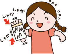 フタをあけて、わりばしでかきまぜ、出てきた水分をコップに移します。これを3回くりかえします。